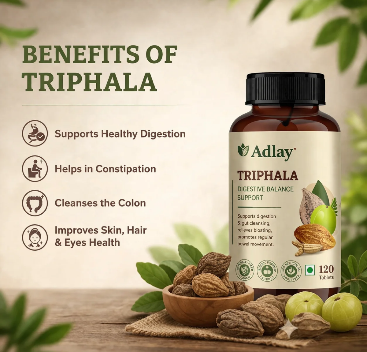 Adlay Premium Triphala Tablets | Authentic Ayurvedic Gut & Digestive Wellness Formula